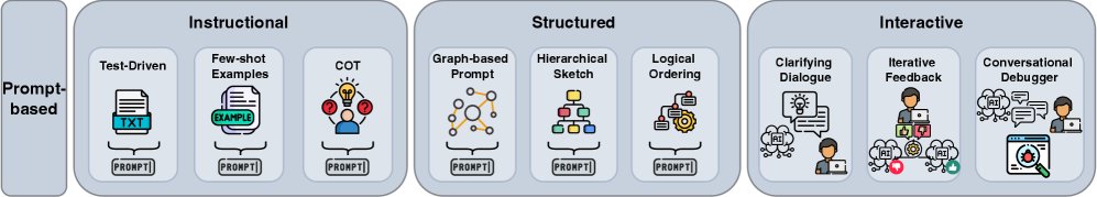 - 基于提示的解决方案 (Prompt-Based Solutions):这是与LLM交互最直接的方式,包括指令式、结构化和交互式提示。