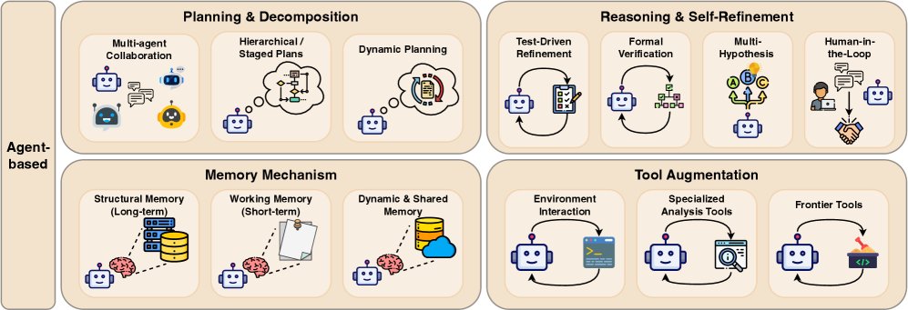 基于智能体 (Agent-based) 的系统是LLM驱动软件工程的前沿,将范式从单次生成转变为自主的、多步骤的问题解决。一个“智能体”是能够感知环境、创建和分解计划、利用外部工具并从反馈中学习以实现高层目标的系统。这种方法模仿了人类软件开发的迭代和交互过程。