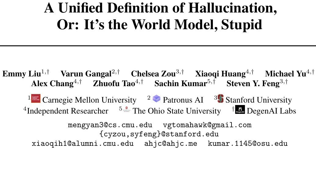 这篇论文并没有提出一个新的微调技巧,而是做了一件更重要的一件事:它将过去所有关于幻觉的定义折叠成了一个统一的数学框架,并指出幻觉的本质是模型内部“世界模型”的偏差。