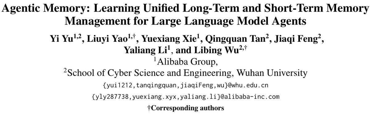 今天我们要解读的这篇论文 Agentic Memory (AgeMem),来自阿里巴巴和武汉大学的研究团队,它提出了一种革命性的思路:把记忆管理的权力交还给Agent自己。