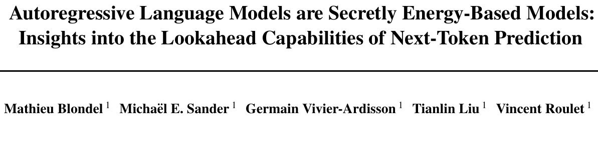 这篇题为《Autoregressive Language Models are Secretly Energy-Based Models》的论文提出了一个颠覆性的观点:自回归模型在本质上就是基于能量的模型。 它们虽然表面上在做下一词预测,但暗地里却在通过学习“软价值函数”来通过局部预测实现全局规划。