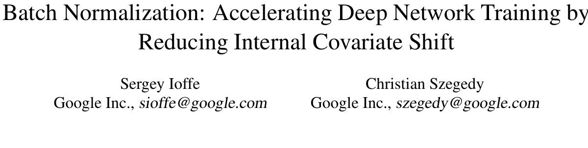 论文标题:Batch Normalization: Accelerating Deep Network Training by Reducing Internal Covariate Shift