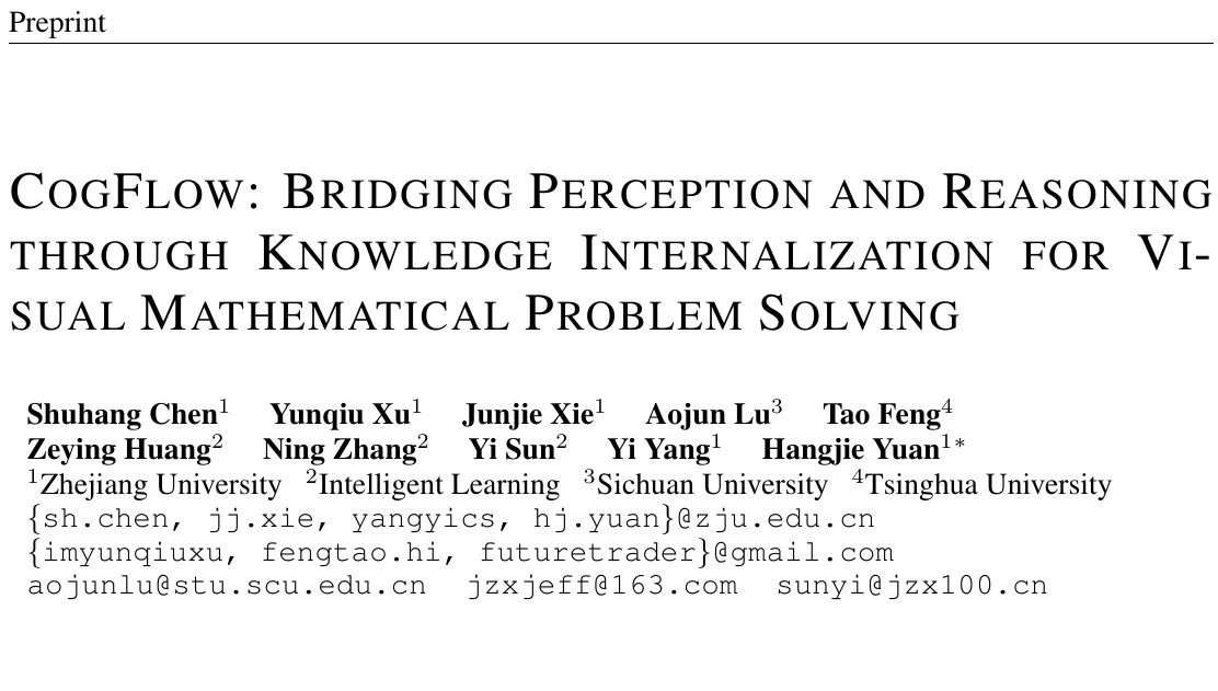 CogFlow 的成功证明了在多模态推理任务中,简单的“大力出奇迹”(堆参数、堆数据)并非唯一路径。通过借鉴人类认知科学的成果,显式地建模“感知-内化-推理”的层级结构,并利用强化学习(RL)对每个环节进行精细化对齐,小模型也能在复杂的视觉数学推理任务中展现出惊人的爆发力。