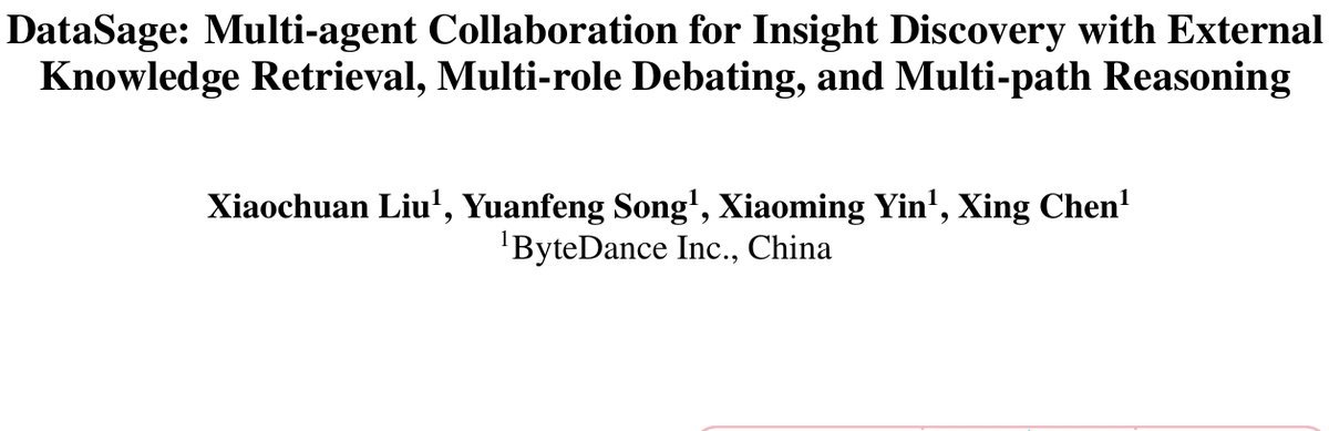 论文标题:DataSage: Multi-agent Collaboration for Insight Discovery with External Knowledge Retrieval, Multi-role Debating, and Multi-path Reasoning ArXiv URL:http://arxiv.org/abs/2511.14299v1