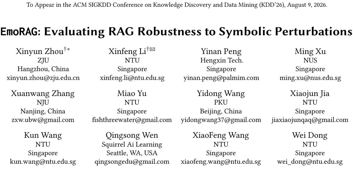 这不是危言耸un,而是一项最新研究揭示的惊人发现。这篇名为 EmoRAG 的论文,系统性地揭示了当前 RAG 系统一个被严重忽视的致命弱点:对符号扰动的极端敏感性。