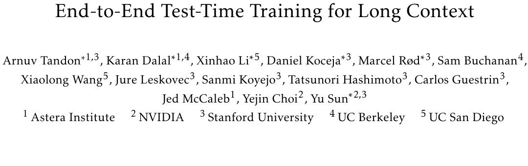 这种方法被称为 测试时训练(Test-Time Training, TTT)。虽然 TTT 的概念并不新鲜,但之前的尝试往往是非端到端的,或者需要复杂的辅助损失函数。本文提出的 TTT-E2E 实现了真正的端到端:在测试时通过标准预测任务更新,在训练时通过元学习(Meta-Learning)优化初始权重。