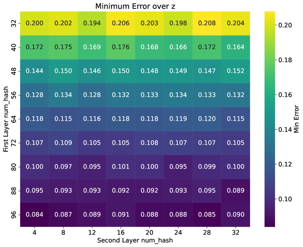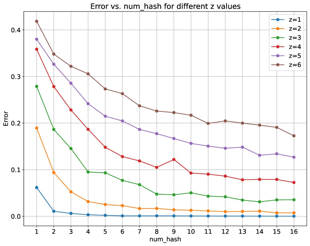 实验结果图直观展示了模型性能随哈希表数量的变化: