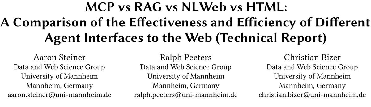 结构化接口完胜:无论是基于API的MCP、NLWeb,还是基于索引的RAG,这些提供结构化数据的接口在效果和效率上都远超传统的HTML浏览。