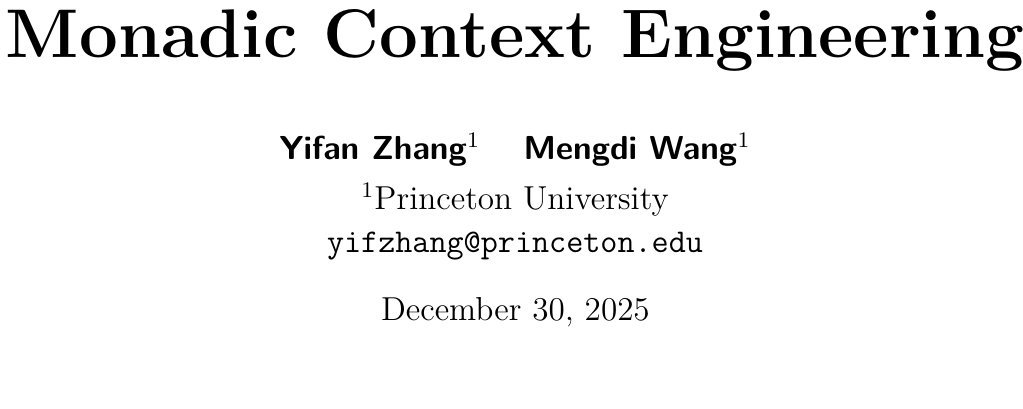 普林斯顿大学的研究团队给出了一个令人耳目一新的答案:单子上下文工程(Monadic Context Engineering, MCE)。这篇论文不仅仅是提出一种新的设计模式,更是将函数式编程中优雅的数学结构——函子(Functor)、应用函子(Applicative)和 单子(Monad)——引入到了 AI Agent 的架构设计中。