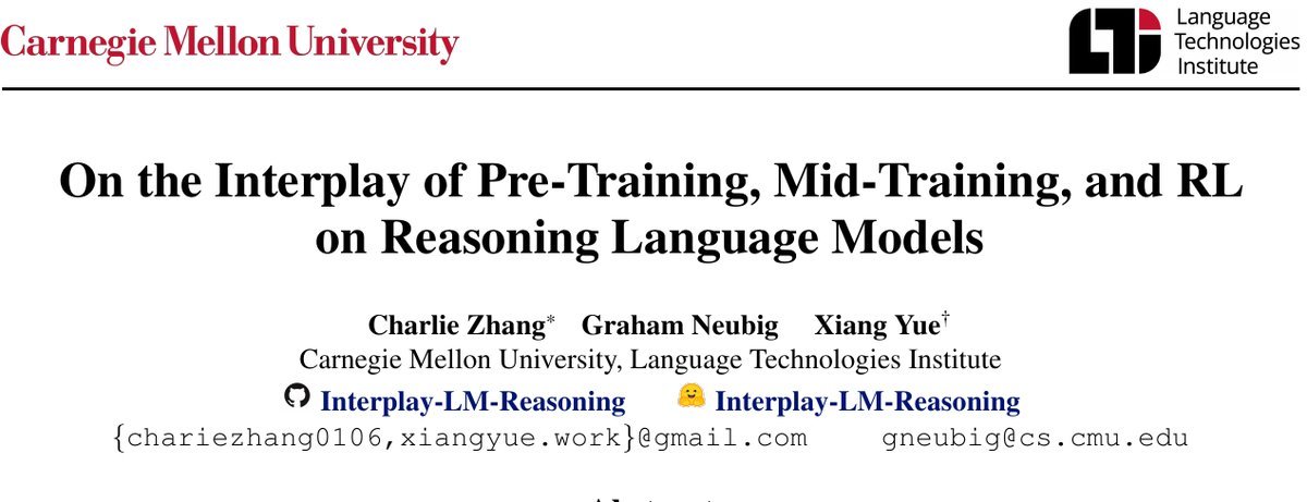 为了拨开这层迷雾,卡内基梅隆大学(CMU)的研究者们设计了一套堪称“洁癖”的实验框架。他们通过完全可控的合成数据,首次清晰地剖析了预训练(Pre-training)、中训练(Mid-training)和强化学习后训练(RL-based Post-training)这“三部曲”在塑造模型推理能力时各自扮演的角色,并得出了颠覆性的结论。