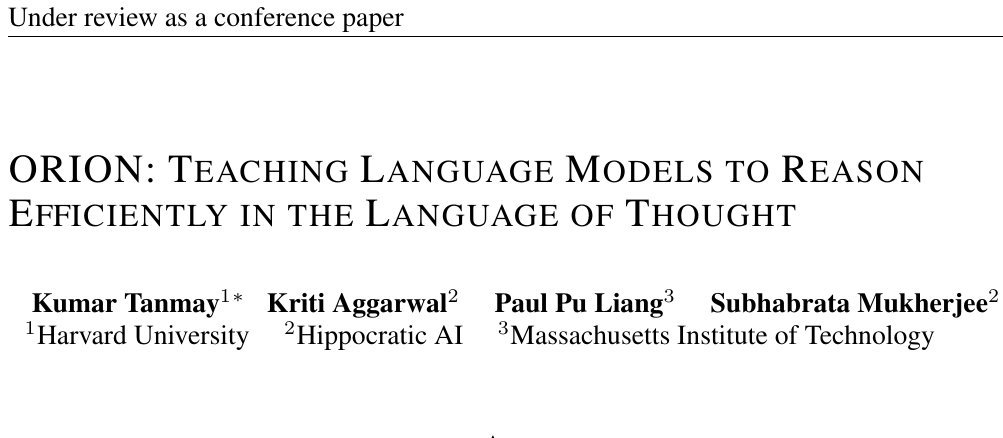 最近,来自哈佛、MIT和Hippocratic AI的研究者们给出了一个全新的解决方案——ORION。受人类“思维语言假说”的启发,该研究让大模型学会用一种极其压缩的符号语言进行思考,推理路径缩短4-16倍,推理延迟降低5倍,训练成本更是锐减7-9倍!最惊人的是,在如此高效的同时,它依然保持了原模型90-98%的准确率,甚至在部分数学基准上超越了GPT-4o和Claude 3.5 Sonnet。