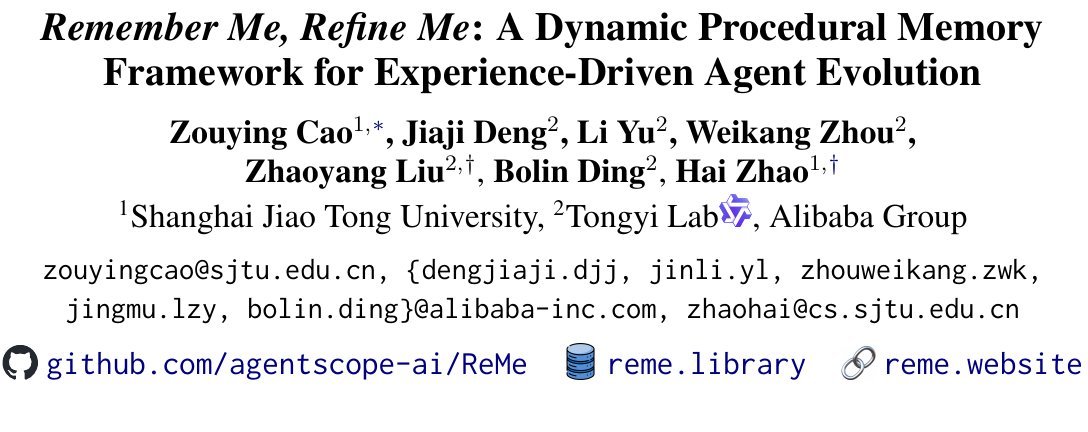 论文链接: Remember Me, Refine Me: A Dynamic Procedural Memory Framework