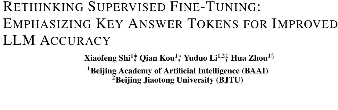 Rethinking Supervised Fine-Tuning: Emphasizing Key Answer Tokens for Improved LLM Accuracy