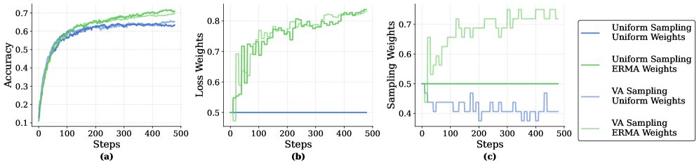 \[b_{i}\;\propto\;\pi_{i}w_{i}v_{i}\]基于此,本文提出了 VA (Variance-Aware Sampling) 方案。该方案在训练过程中: