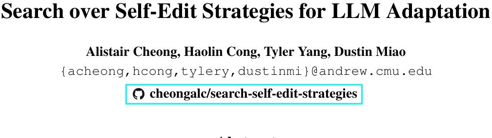 Search over Self-Edit Strategies for LLM Adaptation