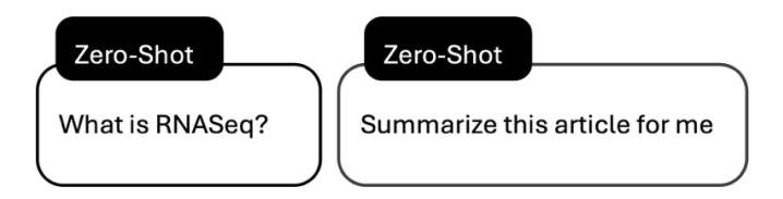 图1. Zero-shot 提示示例。 这是大多数学者使用聊天机器人的方式。虽然有效,但这两种提示触及了使用聊天机器人的两个关键失败点:1) 从 LLM 获取知识;2) 从学术来源中总结密集、细微的信息。