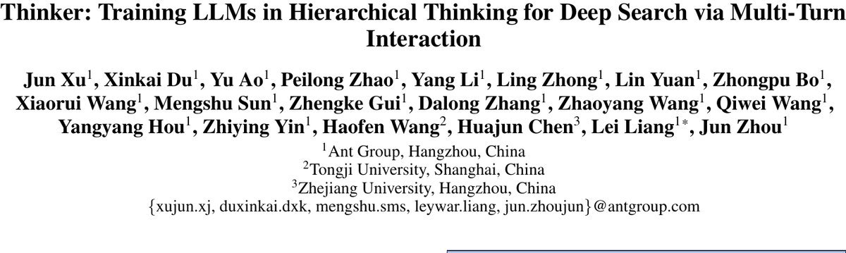 论文标题:Thinker: Training LLMs in Hierarchical Thinking for Deep Search via Multi-Turn Interaction