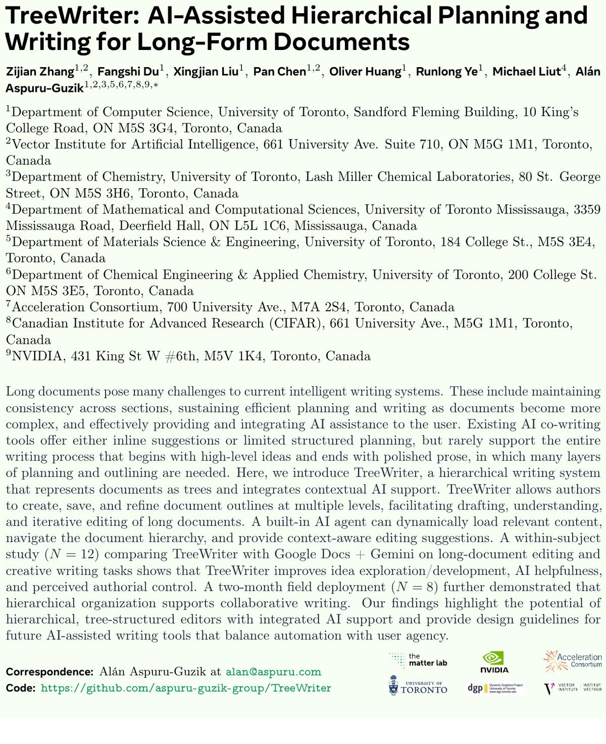 来自多伦多大学、英伟达(NVIDIA)等机构的研究团队给出了答案。他们推出了一款名为 TreeWriter 的新型写作系统,通过将文档建模为“树状结构”,并深度集成AI代理,完美解决了长文档写作中的结构混乱和上下文丢失问题。