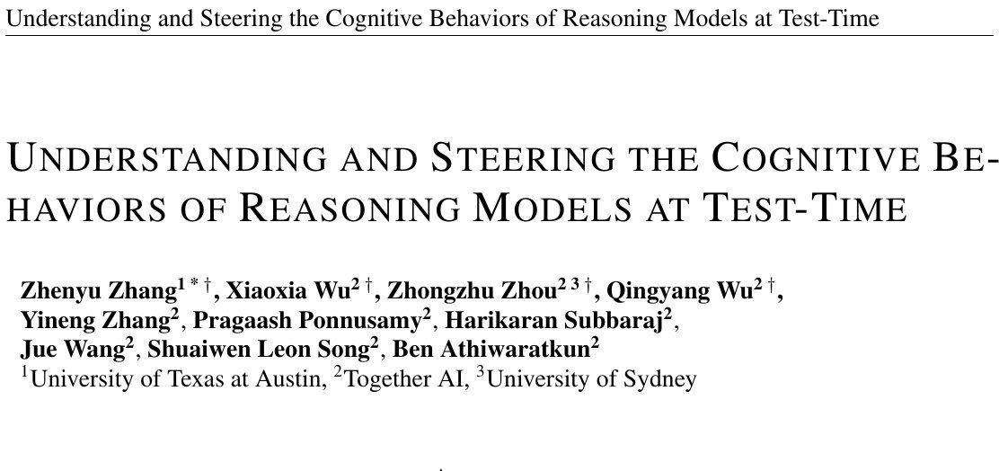 Understanding and Steering the Cognitive Behaviors of Reasoning Models at Test-Time