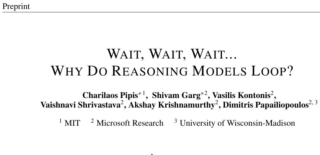 来自 MIT、微软研究院和威斯康星大学麦迪逊分校的研究团队在最新论文《Wait, Wait, Wait… Why Do Reasoning Models Loop?》中,深入剖析了这一现象。该研究得出了一个令人惊讶的结论:死循环的本质是模型学习过程中的系统性错误,而通常被视为“解药”的高温度采样,实际上只是一种掩盖问题的权宜之计。